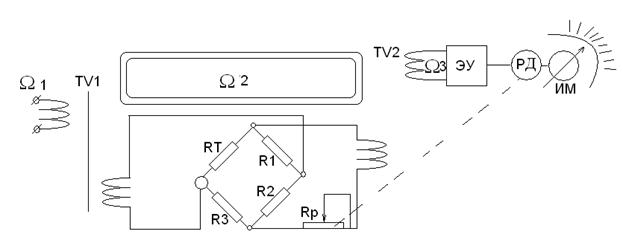 R1, R2, R3 – постоянные сопротивления; Rt – термопреобразователь сопротивления; Rр –переменное сопротивление.