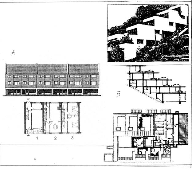 Рис. 7.2. Блокированные усадебные дома (А). Террасные жилые дома (Б)