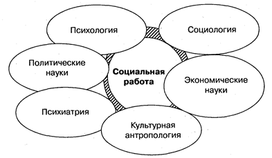 Таким образом, социология, психология, право, социальная политика, социальная философия, социальная антропология и социальная педагогика в ходе становления теории и практики социальной работы входили составной частью в ее теоретические концепты и практические модели, тем самым определив ее как интегративную область познания.