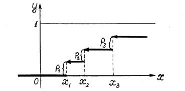 является ступенчатая функция, изображенная на рисунке. Из этого графика видно, что закон распределения случайной величины можно найти через значения функции распределения: