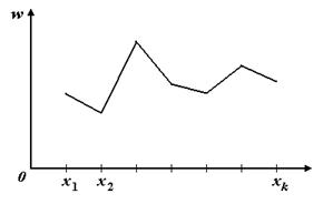 Для наглядности статистическое распределение дискретной случайной величины иллюстрируется полигоном распределения: точки с координатами (x1, w1), (x2, w2) ,..., (xk, wk) изображают на координатной плоскости и соединяют их прямолинейными отрезками: