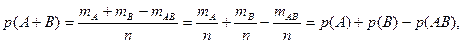 Р (А + В) = р (А) + р (В) – р (АВ). (2.2)