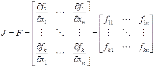 где f – вектор-строка из частных производных fi;
