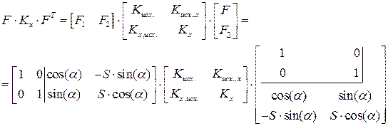Здесь Кисх. – ковариационная матрица погрешностей исходных данных. Если они считаются по отношению к измерениям достаточно малыми, то Кисх = 0 и в матрице F не будет производных по исходным координатам (X0, Y0). Если нет, то эта матрица может быть задана в виде полной матрицы обычного вида