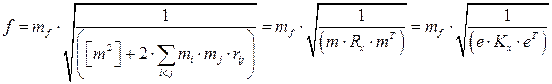 Здесь т – вектор-строка погрешностей измерений; Кх – ковариационная матрица измерений; е – вектор-строка из п единиц (сумматор). Здесь учтено, что Rx = D × Kx × D, где D – диагональная матрица с элементами 1/ mi (масштабатор). Тогда Кх = D -1× Rx × D -1.
