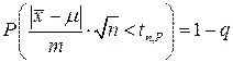 Если при доверительном оценивании стандарт не известен, а есть его оценка в виде средней квадратической погрешности m, то для построения интервала для неизвестного математического ожидания m используют случайную величину