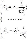 Здесь l – неопределенный множитель Лагранжа, принадлежащий условию [ k ] = 1, которое должно быть обнулено. Так как ищется вид коэффициентов ki, то производные от целевой функции (4.5.5) берутся по ним и полученные выражения приравниваются к нулю