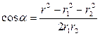 , который может быть найден из треугольника со сторонами r 1, r 2 и r по теореме косинусов: