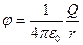 Сравнивая (9.17) и (9.18), приходим к формуле для вычисления потенциала поля точечного заряда Q:
