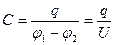 Электроемкость системы из двух проводников - физическая величина, определяемая как отношение заряда q одного из проводников к разности потенциалов