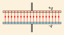 Простейший конденсатор – система из двух плоских проводящих пластин, расположенных параллельно друг другу на малом по сравнению с размерами пластин расстоянии и разделенных слоем диэлектрика. Такой конденсатор называется плоским. Электрическое поле плоского конденсатора в основном локализовано между пластинами; однако, вблизи краев пластин и в окружающем пространстве также возникает сравнительно слабое электрическое поле, которое называют полем рассеяния. В целом ряде задач приближенно можно пренебрегать полем рассеяния и полагать, что электрическое поле плоского конденсатора целиком сосредоточено между его обкладками (рис. 10.4).
