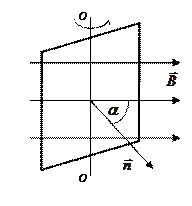 С источниками постоянного тока мы уже знакомы, знаем, для чего они нужны, знаем законы постоянного тока. Но гораздо большее практическое значение в нашей жизни имеет переменный электрический ток, который используется в быту, на производстве и других областях человеческой деятельности. Сила тока и напряжение переменного тока (например, в осветительной сети нашей квартиры) меняются со временем по гармоническому закону. Частота промышленного переменного тока – 50Гц. Источники переменного тока разнообразны по своему устройству и характеристикам. Проволочную рамку, вращающуюся в постоянном однородном магнитном поле, можно рассматривать как простейшую модель генератора переменного тока. На рис.14.3 рамка вращается вокруг вертикальной оси ОО, перпендикулярной силовым линиям магнитного поля, с постоянной угловой скоростью