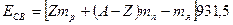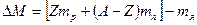 называется дефектом массы ядра. На эту величину масса атомного ядра меньше массы всех нуклонов, из которых это ядро образуется. Для расчета энергии связи в Мегаэлектронвольтах (в Мэв) пользуются формулой: