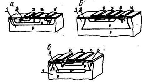 На рис. 7.1 приведены структуры транзисторов, наиболее широко используемых в ИМС и изготовленных по планарно-диффузионной и планарно-эпитаксиальной технологии.