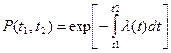 Вероятность безотказной работы системы может быть определена и для произвольного интервала времени (t1; t2), т. е. не с момента включения системы, как рассматривалось ранее. В этом случае говорят об условной вероятности безотказной работы P(t1; t2) в период (t1; t2), имея в виду, что в момент времени t1 (в начале наработки) система находится в работоспособном состоянии.