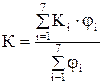 где Кi - расчетный базовый показатель соответствующего класса блоков (согласно ГОСТ 14.202-73); ji - коэффициент весовой значимости показателя; i - порядковый номер показателя в ранжированной последовательности.