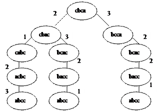 Рассматривая исходную и отсортированную строки как начальное и конечное состояние задачи, а продукционные правила как операторы, преобразующие одно состояние в другое, приходим к выводу, что поиск решения в продукционных системах соответствует поиску в пространстве состояний.