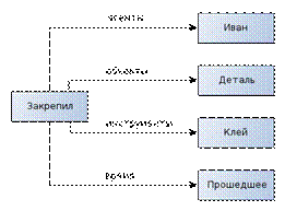- объект – отношение между событием и тем, над чем выполняется действие,