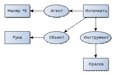 Предложение можно представить вершиной-глаголом и различными падежными связками (отношениями). Такую структуру называют падежной рамкой. Среди падежных отношений выделяют следующие: