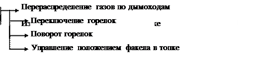 1. поворотом угловых прямоточных горелок в вертикальной плоскости на ±15°