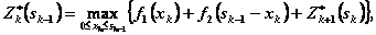 — условная оптимальная прибыль за n-k+1лет, начиная с k-гогода до n-гогода включительно, при условии, что имеющиеся на начало k-гогода средства
