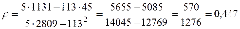 Тогда коэффициент корреляции: