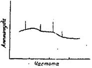 Шумы, излучаемые в воду корабельными механизмами и гребными винтами, представляют собой смеси большого числа отдельных составляющих различной частоты и амплитуды (рис. 19). Составляющие шума могут настолько близко располагаться по частотной шкале, что образуются участки так называемого сплошного спектра.