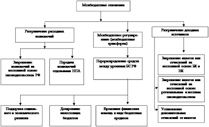 В ст. 6 БК РФ МБО определены, как взаимоотношения между федеральными органами государственной власти, органами государственной власти субъектов РФ, органами местного самоуправления (между публично-правовыми образованиями) по вопросам регулирования бюджетных правоотношений, организации и осуществления бюджетного процесса. БК РФ закладывает основы МБО в ст. 30, 31 и 32. В них указывается, что в основе БС РФ лежит принцип четкого разграничения полномочий между разными уровнями власти и местным самоуправлением и соответствующее закрепление за бюджетами разных уровней доходов и расходов. Также БК РФ устанавливает принципы самостоятельности бюджетов и равенства бюджетных прав субъектов РФ и муниципальных образований.