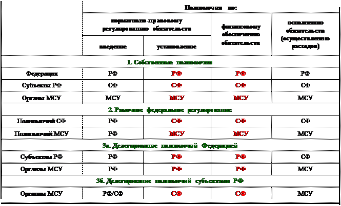 Существуют следующие схемы разграничения расходных полномочий: