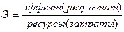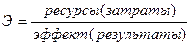 Экономическая эффективность - это соотношение между результатами производственной или хозяйственной деятельности и затратами живого и овеществленного труда, ресурсами. Схематично общая формула эффективности (Э) выглядит следующим образом:
