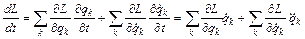 Запишем полную производную функции Лагранжа по времени.