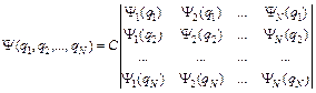 где С – нормировочный множитель. Функцию (7) можно записать в виде определителя: