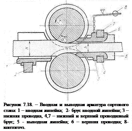 Валковая арматура (рис.7.18) служит для точной задачи и вывода раската из валков, а также удержания в нужном положении раската в калибре.