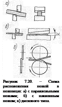 Для порезки проката на мерные длины, удаления концов и пр. используют гильотинные и дисковые ножницы (рис.7.20), дисковые пилы салазкового или маятникового типов, летучие ножницы и пр.