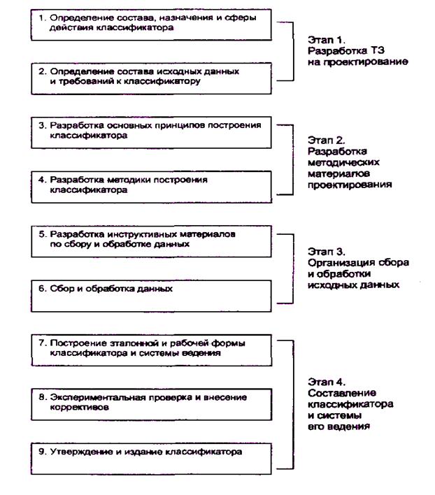 Все работы по проектированию классификаторов заканчиваются экспериментальной проверкой и внесением коррективов, утверждением, изданием и рассылкой классификаторов всем пользователям в функциональные подсистемы.