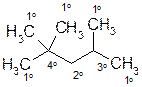 Первичный (1о) атом углерода связан с одним углеродным атомом, вторичный (2о) - с двумя, третичный (3о) – с тремя, а четвертичный (4о) - с четырьмя атомами углерода.