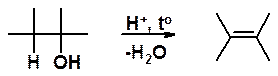 Реакция подобна дегидрогалогенированию, однако условия ее протекания другие. Реакцию проводят, нагревая спирт с разбавленной серной или фосфорной кислотами при температуре около 200оС, либо пропуская пары спирта при 400оС над оксидом алюминия (Al2O3). Направление отщепления воды от спирта то же самое, что и в случае отщепления галогеноводорода – атом водорода отщепляется от соседнего с функциональной группой наименее гидрогенизированного атома углерода. «Гидрогенизированный» - атом углерода, несущий водородные атомы. Водород отщепляется от того углерода, который связан с меньшим числом атомов водорода.