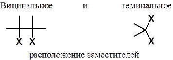 Если в органическом соединении два заместителя связаны с одним атомом углерода, такое расположение атомов или функциональных групп называется вицинальным (виц-). Если атомы или функциональные группы связаны с соседними углеродными атомами – геминальным (гем-).