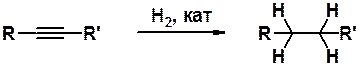Источником алкенов могут быть и ацетиленовые углеводороды. Гидрирование алкинов в присутствии гетерогенного катализатора (Pt, Pd, Ni) сразу приводит к предельным углеводородам, поскольку промежуточно образующиеся алкены вступают в реакцию гидрирования легче, чем алкины.