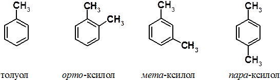 Бензол существует в виде единственного изомера. Дизамещенные бензолы – в виде трех изомеров: орто -, мета - и пара -.