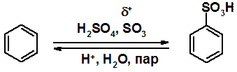 Высокие концентрации серной кислоты (обычно используют олеум) сдвигают реакцию в сторону сульфирования. Низкие концентрации серной кислоты (обычно в раствор сульфоновой кислоты в водной H2SO4 пропускают перегретый пар) – в сторону десульфирования.