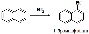 Хлорирование и бромирование нафталина, как и нитрование, протекает в положение 1. Реакция идет настолько легко, что в отличие от бензола не требует катализатора – кислоты Льюиса.