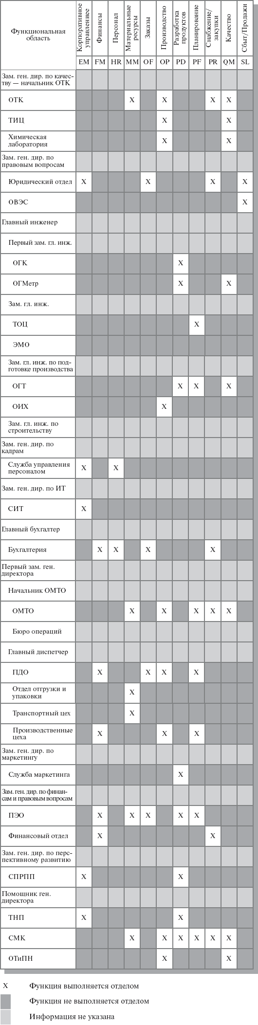 Распределение функций по структурным подразделениям в разрезе отдельных функциональных областей деятельности по управлению производственным предприятием представлено на рис. 4.14.