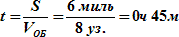 3. Снимаем расстояние S (6 миль) от исходной точки (т.