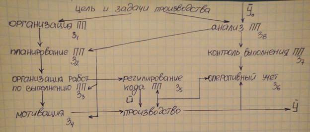 Организация производства-установление и обеспечение связи между элементами(т.е. связи между элементами производственной системы и внешней среды).Организация предшествует управлению, т.к. прежде чем управлять производством необходимо его создать.