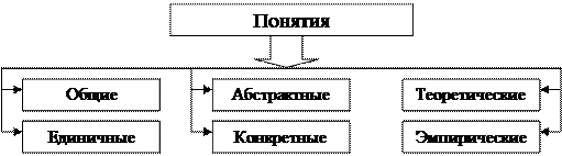 Понятия могут быть всеобщими и единичными, конкретными и абстрактными, теоретическими и эмпирическими (рис. 77).