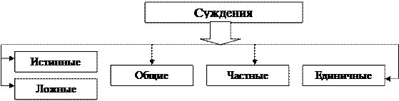 Суждения могут быть истинными или ложными, общими, частными и единичными (рис. 78).