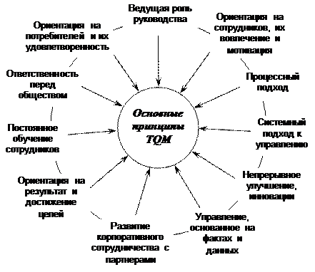 Основные понятия и принципы TQM, на которых должны строиться системы управления организации, символически можно представить с помощью так называемого «Дома всеобщего качества» (рис. 1.7).