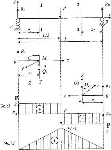 Рассмотрим второй характерный пример изгиба двухопорной балки (рис.3).