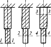 - перемещение промежуточного сечения 2—2 (рис. 8, б) численно равно удлинению части стержня, заключенной между данным сечением и сечением неподвижным;